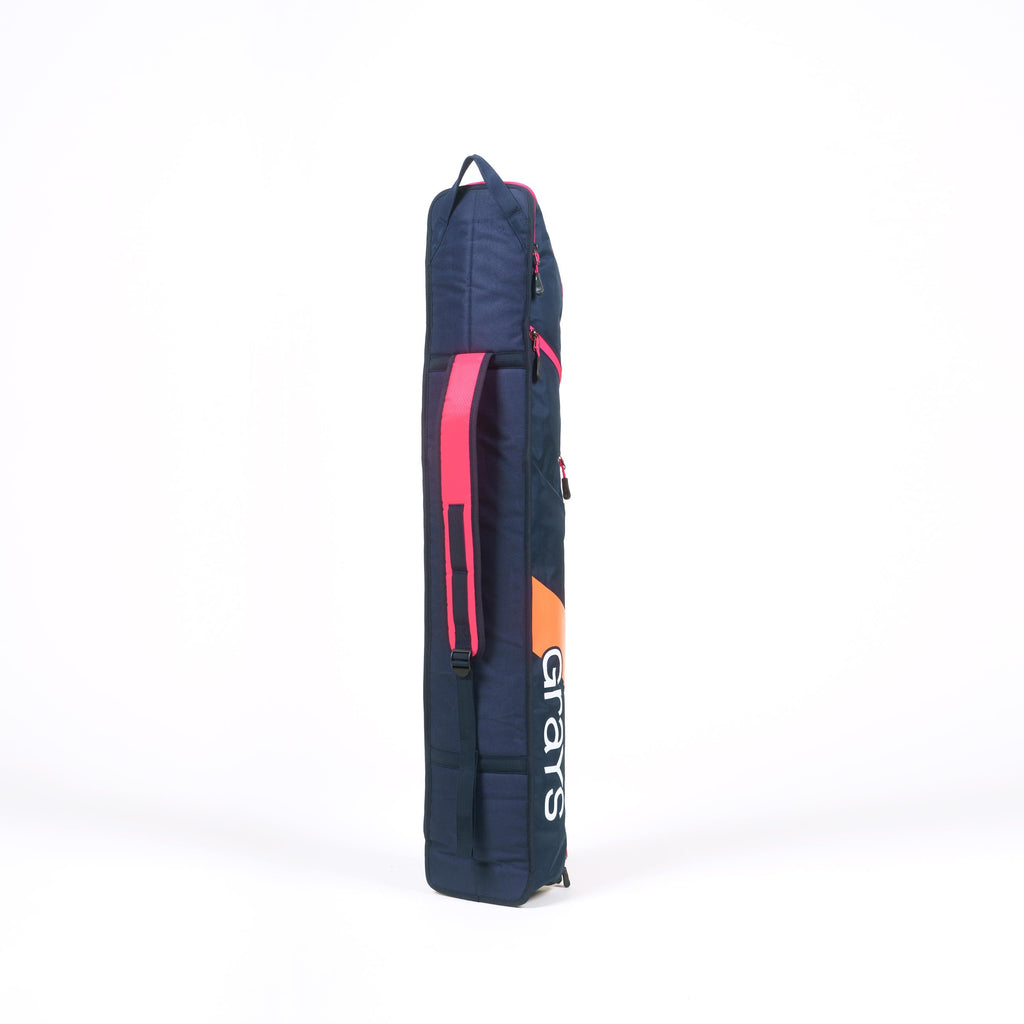 Crafted with durable, water-repellent materials, this bag ensures your equipment stays protected regardless of the conditions. The dedicated padded stick compartment securely accommodates up to two sticks, while the intuitive multi-pocket design provides effortless access to essentials. With two main storage pockets, a valuables pocket, and a designated area for drinks, you'll have everything you need right at your fingertips. The single padded strap adds comfort, making transport seamless and hassle-free.
